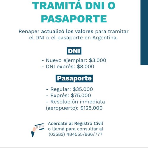 10 enero, 2024Renaper actualizó los valores para tramitar el DNI o el pasaporte en Argentina. El Renaper informó las nuevas tarifas para obtener el DNI o el pasaporte en el país. -DNI […]