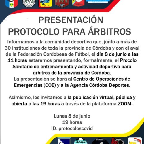 8 junio, 2020El protocolo cuenta con el aval de la Federación Cordobesa de Fútbol.