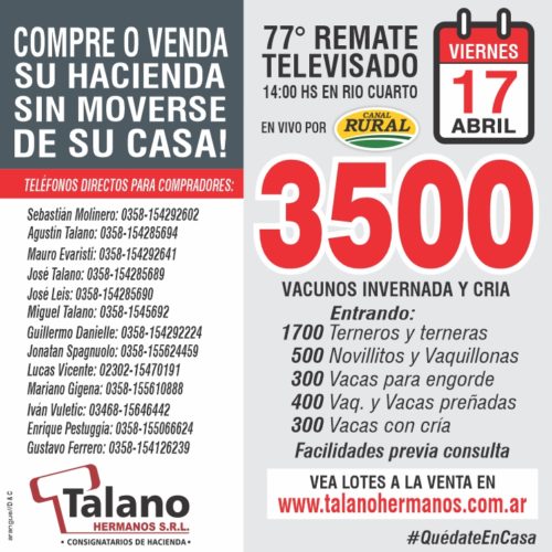 16 abril, 2020Subastará este viernes a las 14 por Canal Rural.