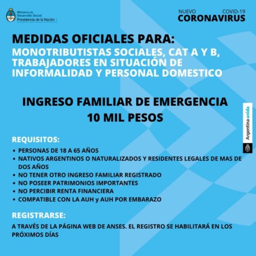 25 marzo, 2020Solicitan información a los vecinos para poder ayudarlos a gestionar la ayuda económica impulsada por el Gobierno Nacional.