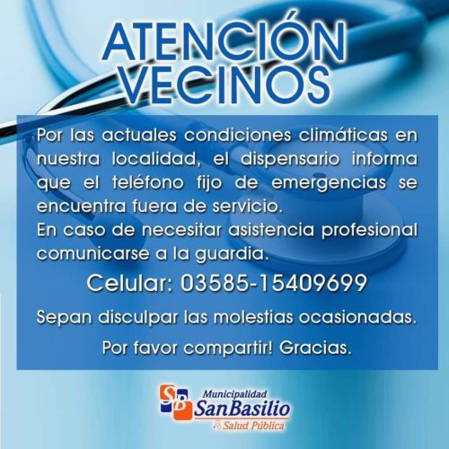 5 febrero, 2020Debido a los cortes en las lineas de telefono, la gestión de Rubén Moine puso a disposición un número de celular en caso de requerir una asistencia de emergencia.