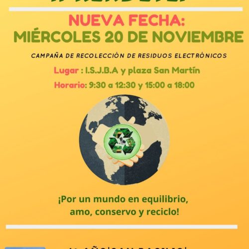 14 noviembre, 2019Se realizará una nueva edición de la campaña de recolección de residuos electrónicos.