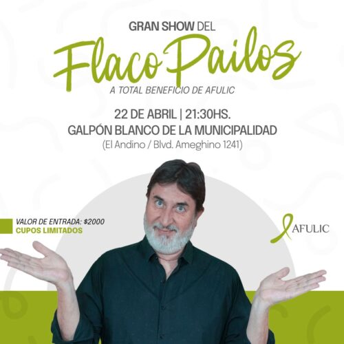 17 abril, 2023Este Domingo 22 de Abril, el Flaco Pailos se presentará en Río Cuarto, con un show a total beneficio de la Fundación Afulic. La Municipalidad de Río Cuarto invita a […]