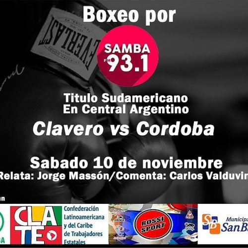 8 noviembre, 2018Este sábado 10 de noviembre boxeo en vivo por FM Samba 93.1 y www.fmsamba.com. A partir de las 22:00 horas y en directo desde Club Central Argentino en Río Cuarto. […]