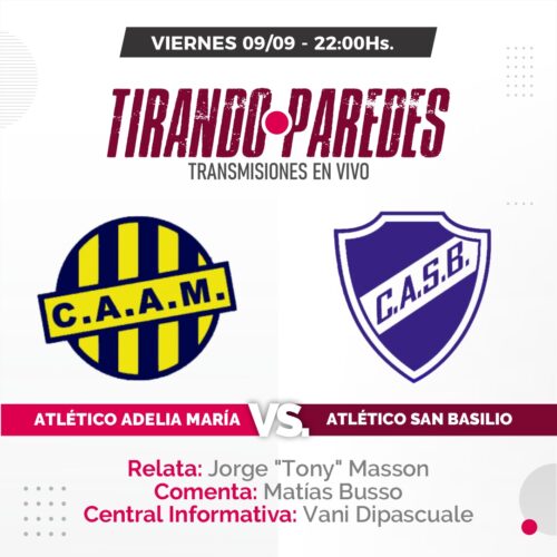 8 septiembre, 2022El viernes se viene otra transmisión de Tirando Paredes desde Adelia Maria. A través de FM Samba podes seguir los relatos de Jorge Luis «Tony» Masson del Clásico entre «Canallas» […]