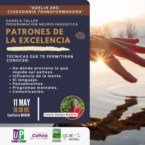 10 mayo, 2023La Municipalidad de Adelia María auspicia la Charla-Taller de Programación Neurolinguística, a cargo de la Coach Gladys Bisotto, taller enmarcado dentro de «ADELIA 360: ciudadanía transformadora». La Municipalida de Adelia María invita […]