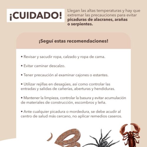 Leer MásPrecauciones para evitar picaduras de alacranes, arañas o serpientes.