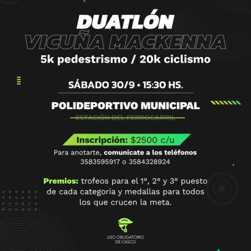 26 septiembre, 2023Ya se encuentran habilitadas las inscripciones para el DUATLÓN de Vicuña Mackenna, el cual se desarrollará el próximo Sábado 30 de Septiembre. Si te gustan los desafíos deportivos, no puedes […]