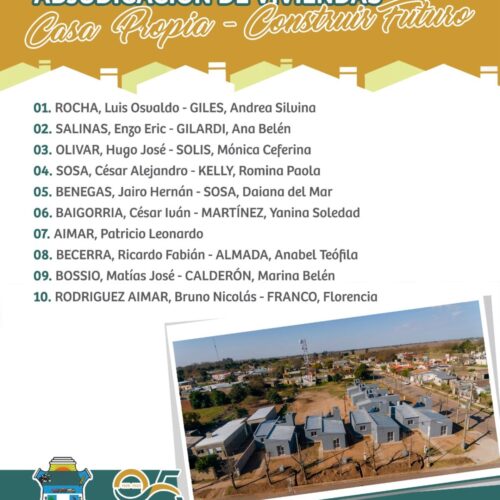 6 septiembre, 2023El día 31 de Agosto se llevó a cabo la Adjudicación de las 10 Viviendas del Plan Nacional en Monte de los Gauchos. En el marco del Plan Nacional Casa […]