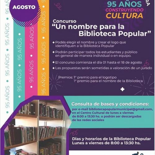 7 agosto, 2023En el marco de los festejos por los 95° aniversario de San Basilio, se lanzó un nuevo concurso para designar un nombre a la Biblioteca Popular de la localidad. La […]