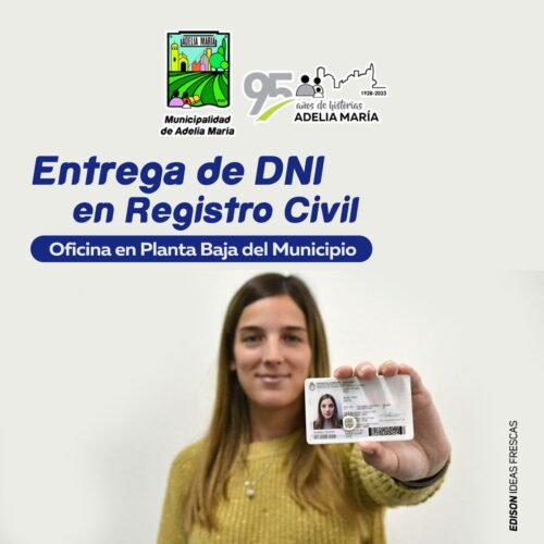 8 agosto, 2023La Oficina del Registro Civil de Adelia María informa que se pueden tramitar DNI robados o extraviados de Lunes a Viernes de 7 a 13 hs. Desde la oficina de […]