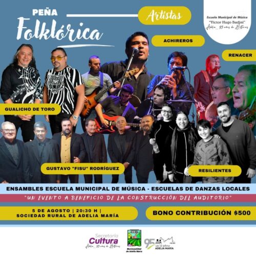 4 agosto, 2023Peña Folklórica organizada por la escuela musical municipal «Víctor Hugo Budini» de Adelia María, con el objetivo de recaudar fondos para la construcción del Auditorio Municipal. La Escuela Municipal de […]