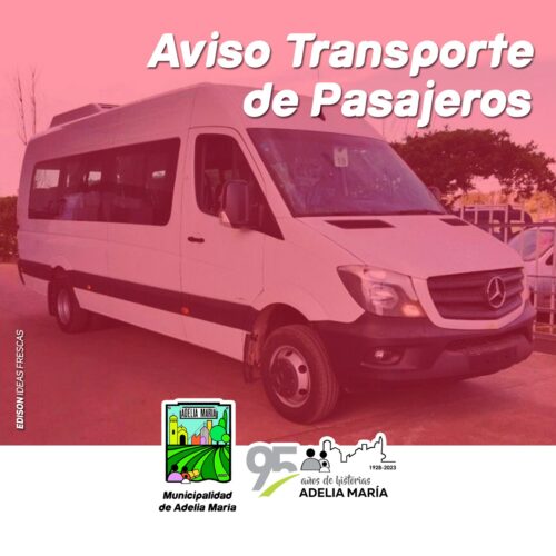 7 julio, 2023La Municipalidad de Adelia María informa que los vehículos de transporte de pasajeros deben estar habilitados a tal fin. La Municipalidad de Adelia María comunica que los vehículos de transporte […]