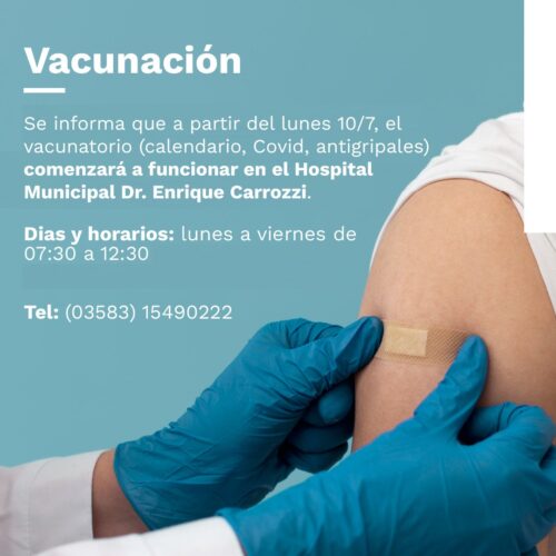 5 julio, 2023A partir del día Lunes 10 de Julio el Vacunatorio comenzará a funcionar en el Hospital Municipal Dr. Enrique Carozzi de Vicuña Mackenna. El Hospital Municipal Dr. Enrique Carrozzi de […]