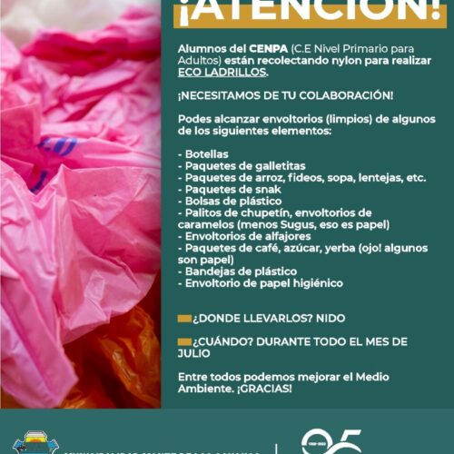 30 junio, 2023Los alumnos del CENPA N°12 solicitan la colaboración de los vecinos de Monte de los Gauchos para la recolección de nylon, el cual será utilizado para realizar ECO LADRILLOS. Los […]