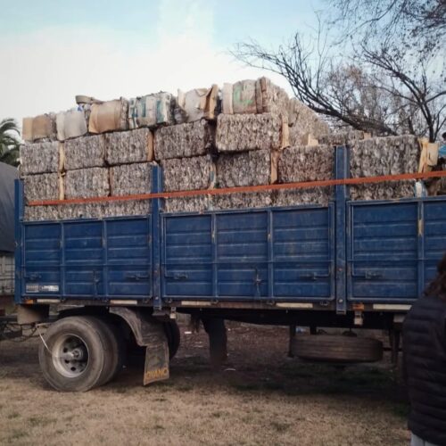 Traslado de los fardos de botellas plásticas compactadas