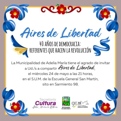 19 mayo, 2023La Municipalidad de Adelia María invita a festejar los 40 años de Democracia en Argentina. Este viernes 26 de Mayo, la Municipalidad de Adelia María invita a los vecinos de […]