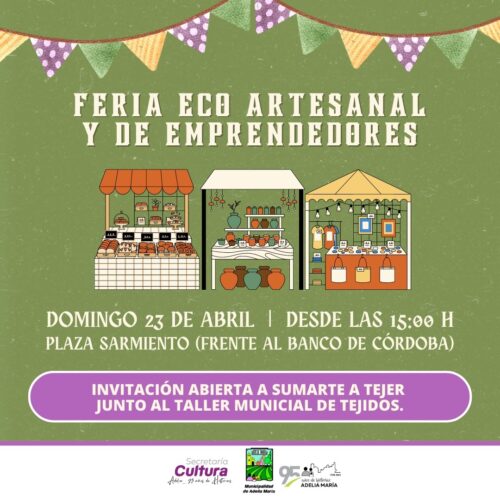 20 abril, 2023El día Domingo 23 de Abril a partir de las 15:00 horas en la Plaza Sarmiento, se desarrollará la Feria Eco-Artesanal y de Emprendedores en la localidad de Adelia María. […]