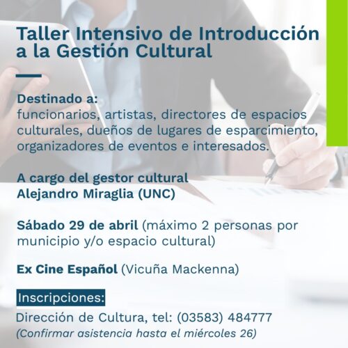 18 abril, 2023Se encuentran abiertas las inscripciones para el Taller de Introducción a la Gestión Cultural dictado por la Universidad Popular de Vicuña Mackenna. Hasta el Miércoles 26 de Abril se podrá […]