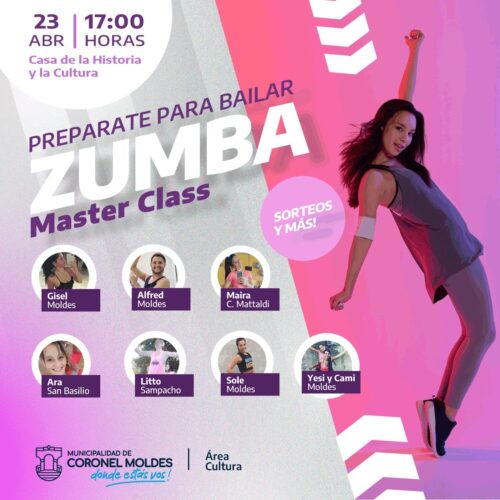 13 abril, 2023El Domingo 23 de Abril , la Municipalidad de Coronel Moldes auspicia una clase abierta de Zumba, Master Class. La Municipalidad de Coronel Moldes organiza para este Domingo 23 de […]