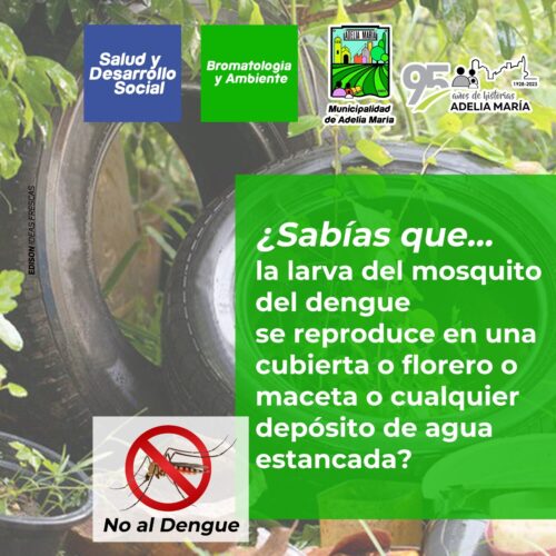 27 marzo, 2023Las Áreas de Salud y Ambiente de la Municipalidad de Adelia María informan que se han identificado pacientes con virus del dengue. Por picaduras de mosquitos Aedes infectados, las Áreas de Salud […]