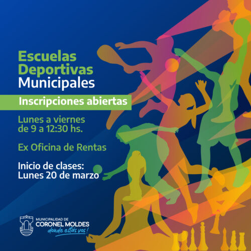 13 marzo, 2023La Municipalidad de Coronel Moldes inició las inscripciones para las diferentes Escuelas Deportivas Municipales. Las clases comenzaran el Lunes 20 de Marzo. Ya se iniciaron las inscripciones para las Escuelas […]