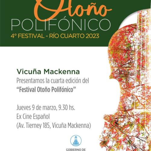 8 marzo, 2023Se presenta en Vicuña Mackenna la 4° Edición del Festival Otoño Polifónico de Río Cuarto. Este Jueves 9 de Marzo se presenta en el Ex Cine Español, Av Tierney 185, […]