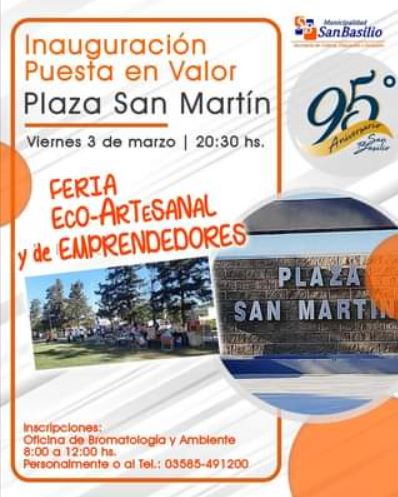 28 febrero, 2023El Viernes de 3 de Marzo se inaugurará la Nueva Plaza San Martín en San Basilio, a partir de las 20.30 hs. En el marco de los festejos por los […]