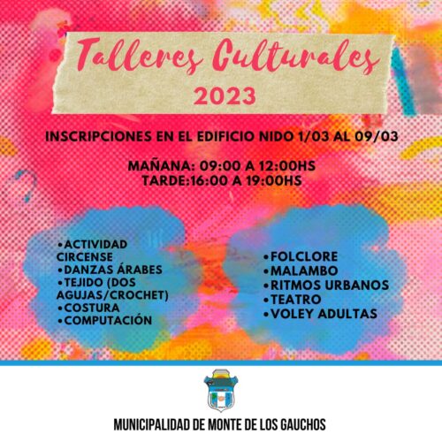 1 marzo, 2023Ya se encuentran abiertas las inscripciones para los talleres culturales 2023 de la Municipalidad de Monte de los Gauchos. Desde el 1 de Marzo al 9 del mismo mes estarán […]