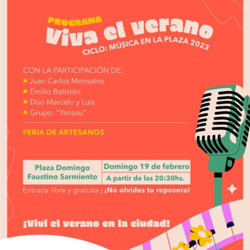 15 febrero, 2023Este Domingo 19 de Febrero se realizará otra edición del ciclo cultural Viva el Verano: Música en la Plaza 20-23 en la localidad de Vicuña Mackenna, con la participación de […]