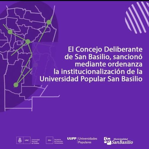 8 febrero, 2023El Consejo Deliberante de San Basilio, sancionó mediante Ordenanza Municipal la Institucionalización de la Universidad Popular en San Basilio. El Programa Universidades Populares de la Secretaría de Extensión de la […]