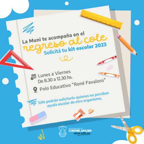 6 febrero, 2023Campaña de acompañamiento de la Municipalidad de Coronel Moldes con la vuelta al cole en este nuevo año lectivo. La Municipalidad de Coronel Moldes quiere estar presente una vez más en […]
