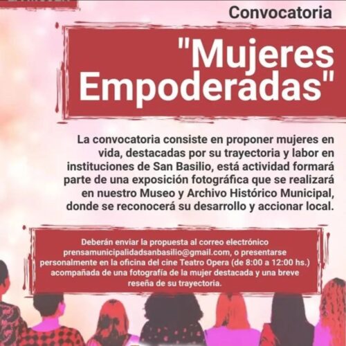 6 febrero, 2023Convocatoria de «Mujeres Empoderadas» en San Basilio. La Secretaría de Cultura, Educación e Inclusión de la Municipalidad de San Basilio realiza una convocatoria a los vecinos de la localidad, con […]