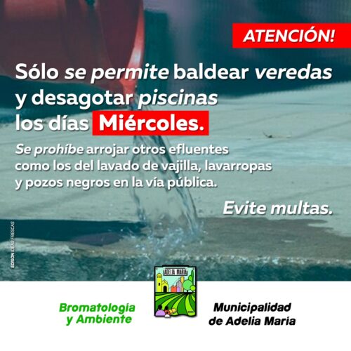 31 enero, 2023La Municipalidad de Adelia María informó que para la utilización del agua en el limpiado de las veredas o piletas hay un día específico permitido. La Municipalidad de Adelia María […]