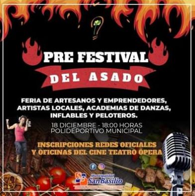 13 diciembre, 2022El Domingo 18/12 se realizará la Primera Edición del Festival del Asado en la localidad de San Basilio. El próximo Domingo 18 de Diciembre en las instalaciones del Polideportivo Municipal […]
