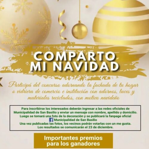 5 diciembre, 2022Concurso destinado a decorar y embellecer la localidad con luces y material reciclado vinculados al espíritu navideño. Concurso «Comparto mi Navidad» implementado por la Municipalidad de San Basilio el cual […]
