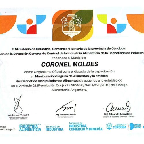 4 noviembre, 2022La Provincia reconoció a los Municipios por la capacitación en Manipulación Segura de Alimentos y la emisión del Carnet de Manipulador de Alimentos. En un evento organizado por el Ministerio de […]