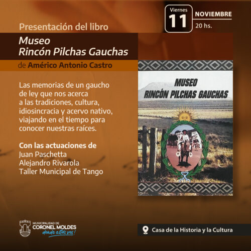 27 octubre, 2022Américo Antonio Castro presenta su libro «Museo Rincón Pilchas Gauchas», el Viernes 11 de Noviembre en la Casa de la Historia y la Cultura de Coronel Moldes. El Área de […]