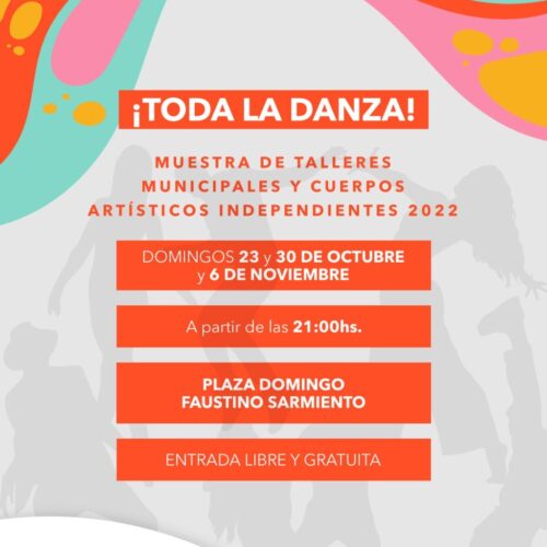 18 octubre, 2022Este Domingo 23, 30 de Octubre y él día 6 de Noviembre, se realizará la Muestra de los Talleres Municipales y Cuerpos Artísticos Independientes 2022. En la Plaza Domingo F. […]