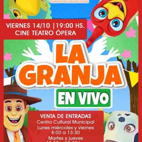 15 septiembre, 2022Llega el próximo viernes 14/10 a San Basilio «La Granja», show completamente renovado Tickets anticipados a la venta en Centro Cultural Municipal . Fila 1 a 11 $1700 Fila 12 […]