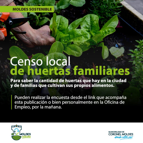 4 agosto, 2022Se llevará a cabo un censo de huertas familiares el cual permitirá conocer cuántas familias cultivan sus propios alimentos y de qué manera lo hacen. La Municipalidad de Coronel Moldes, invita […]