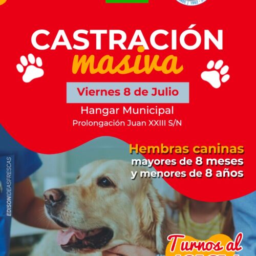 1 julio, 2022La Municipalidad de Adelia María a través del Área de Bromatología , lanzó la campaña de Castración Masiva destinada en esta oportunidad a hembras caninas, a realizarse el Viernes 8 de […]