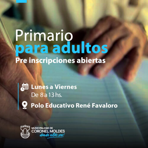 4 julio, 2022Ya se encuentran abiertas las inscripciones para concretar la terminación de los estudios primarios para Adultos, organizado por la Municipalidad de Coronel Moldes. Para todo vecino mayor de edad que no […]