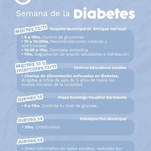 11 noviembre, 2024Mirá el cronograma de actividades de la semana, organizadas por diferentes áreas de la Municipalidad. Habrá actividades en: Hospital Municipal Dr. Enrique Carrozzi Centros educativos locales Plaza Domingo Faustino Sarmiento […]