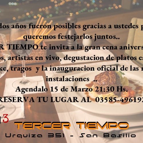 8 marzo, 2019Uno de los regresos de esta temporada fue la re apertura del Restobar TERCER TIEMPO ahora en sus nuevas instalaciones de URQUIZA 351 (Predio del Natatorio Municipal) , en esta […]