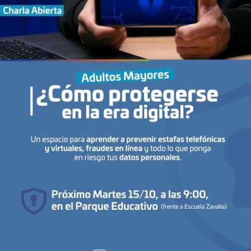 13 octubre, 2024Nueva Charla Abierta, en el marco del Mes del Adulto Mayor. Un espacio sumamente necesario para aprender a estar atentos y prevenir estafas, engaños y fraudes que pueden exponer nuestros […]