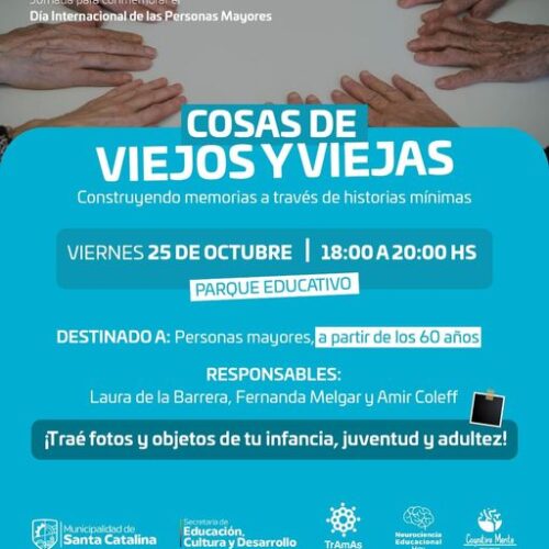 16 octubre, 2024¡Una gran propuesta en el mes de los Adultos Mayores! «Cosas de viejos y viejas: construyendo memorias a través de historias mínimas» El viernes 25 de octubre, desde las 18:00, […]