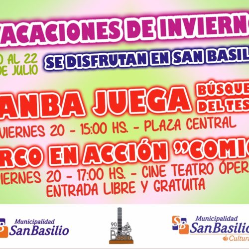 15 julio, 2018Continúan las vacaciones de invierno en San Basilio, para este lunes 16 de julio la cita es a las 15:00 hs en el Polideportivo Municipal.