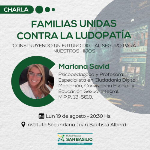 24 julio, 2024Viernes 26 de julio ⏰08: 30 📍Salón de eventos C.A.S.B 👨🏫 Disertante: Martín Diaz Zorita 📧 Preinscripción: secretariadegobiernosb@gmail.com 🟢Municipalidad de San Basilio, construyendo futuro