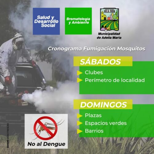 20 enero, 2024La Municipalidad de Adelia María publicó el cronograma de la fumigación de mosquitos. La Municipalidad de Adelia María informa que se realizará la fumigación de mosquitos en la localidad, durante […]